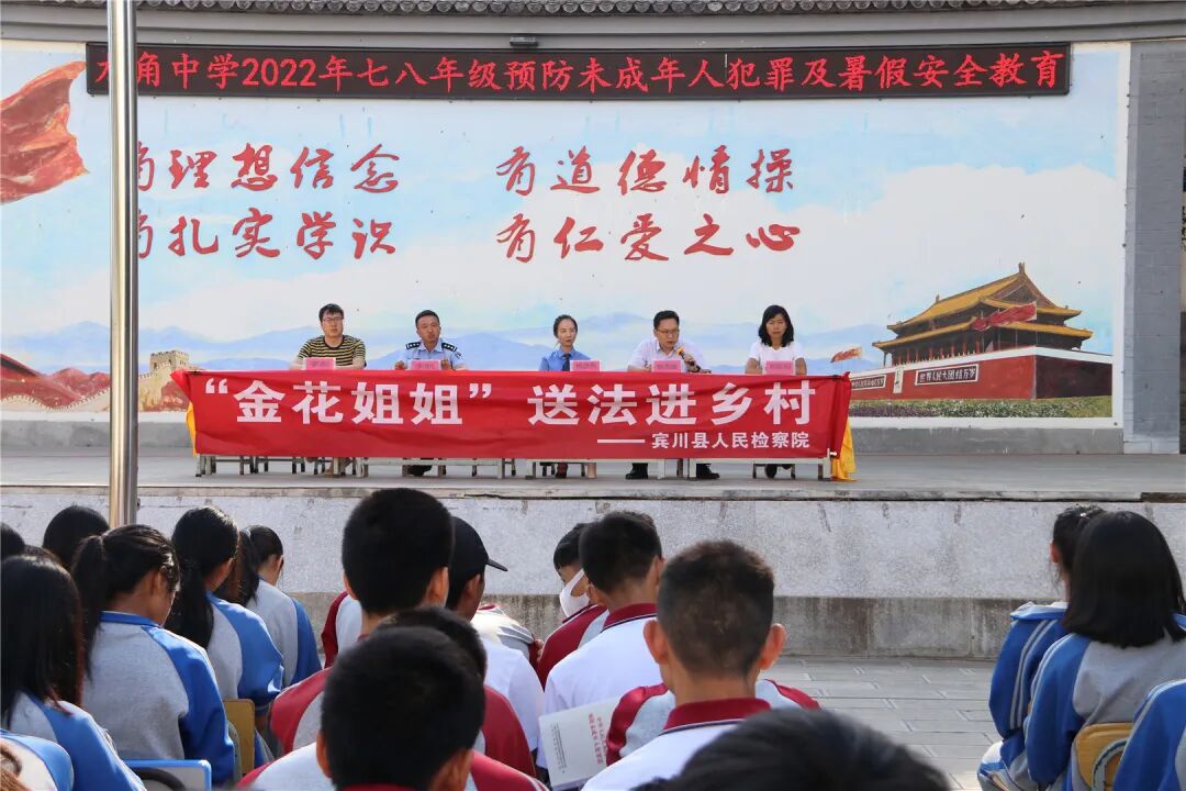 7月15日,力角镇联合宾川县检察院、力角派出所到力角中学组织开展2022年预防未成年人犯罪及暑期安全教育活动。县检察院未成年人刑事案件检察科科长、“金花姐姐”杨彦燕为力角中学七八年级学生开展了法律知识讲座。