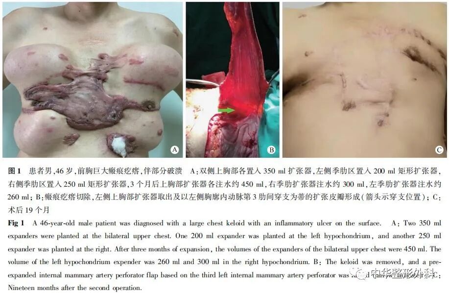 Reconstruction of 41 cases of large chest keloids with the pre-expanded internal mammary artery perforator flap
