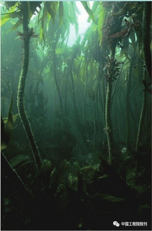 图1 极北海带(Laminaria hyberborea)生长在苏格兰彭特兰湾水深达30m的地方。彭特兰湾是苏格兰大陆和奥克尼群岛之间的一片海峡,是世界上利用潮汐能的最佳位置,潮流速度可以超过5m?s–1