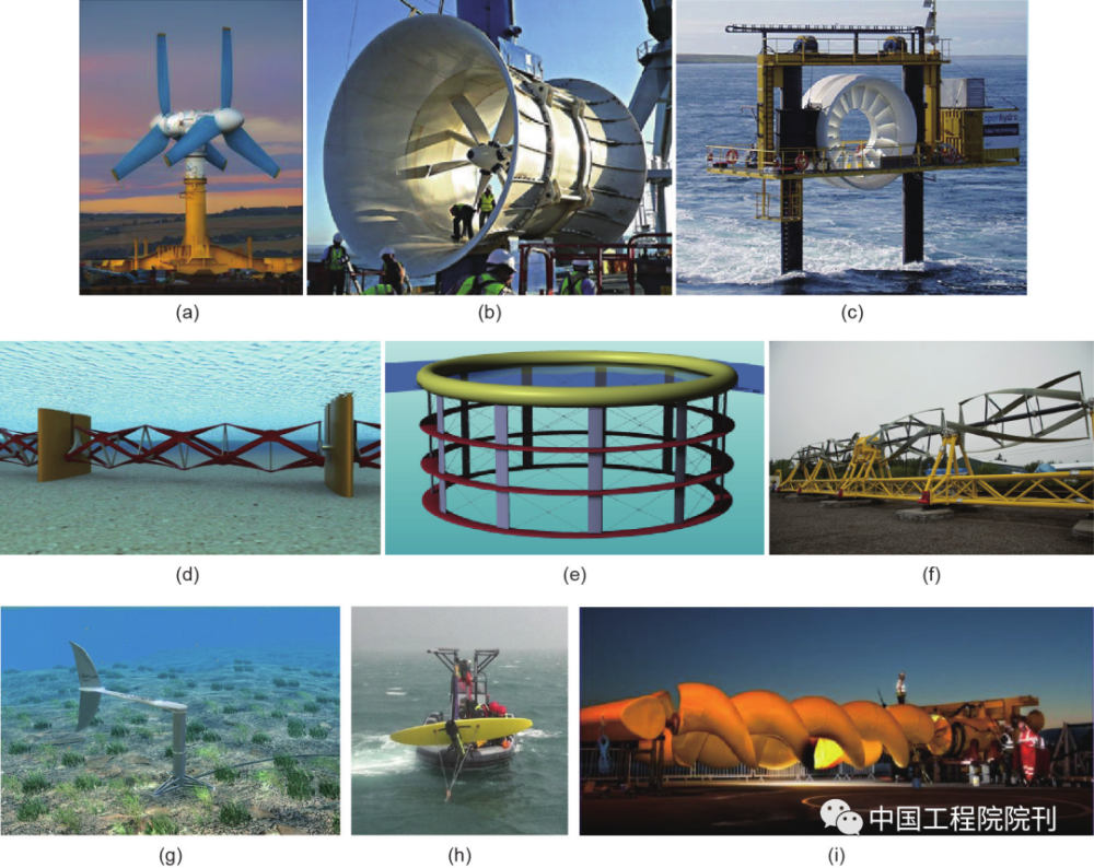 (h)Minesto深海潮汐风筝;(i)Flumill Archimedes螺旋式涡轮机