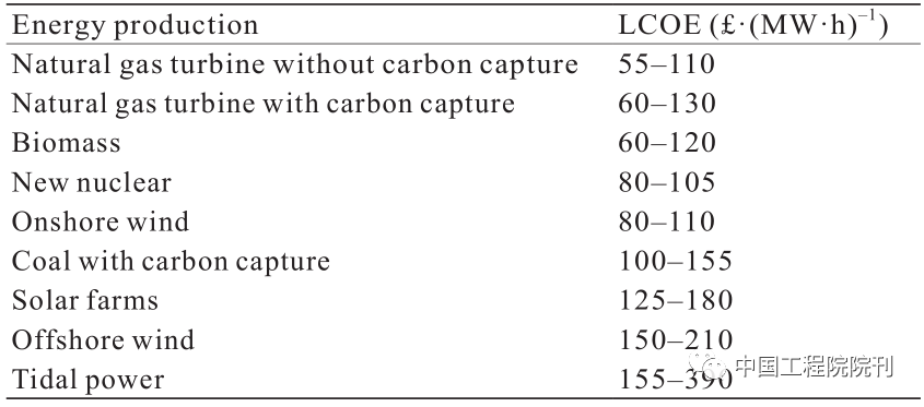 表2 2010年英国一系列能源的度电成本(LCOE)预测