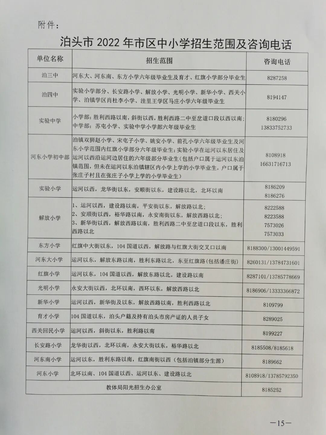 附件:泊头市2022年市区中小学招生范围及咨询电话