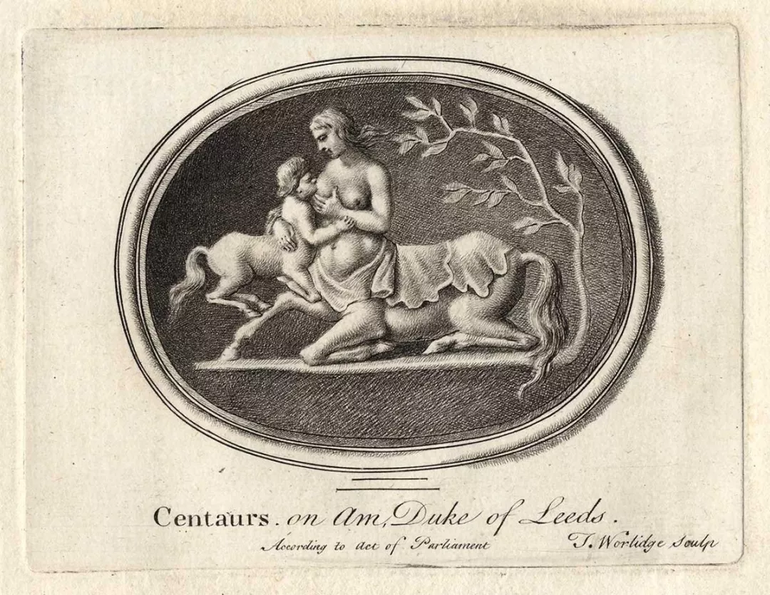 例子数不胜数,比如蚀刻师托马斯·沃利奇(1700?1766)创作的《正在哺乳的人马母亲》: