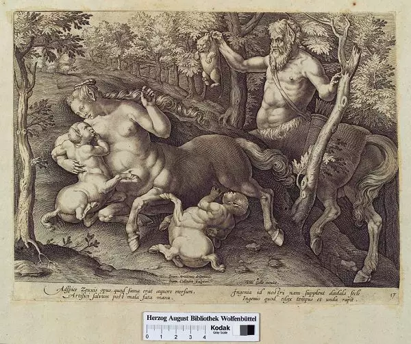 致力于半人马的生理学和营养学的艺术家Jan van der straet在1580年出版的一本图书中绘制了这样的插图: