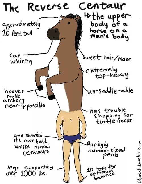 同理,半人马自然源于男人母马,与源自公马女人的半马人不同。