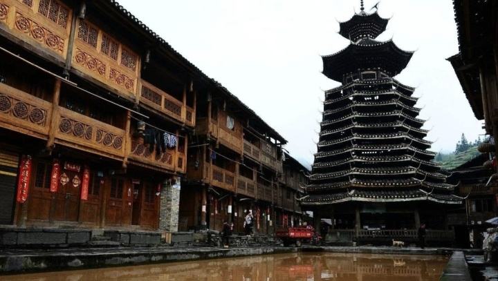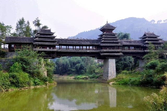 地坪风雨桥,位于黎平县地坪镇,俗称花桥,始建于清光绪八年(公元1882年),历史上曾多次修葺,是全国重点文物保护单位。