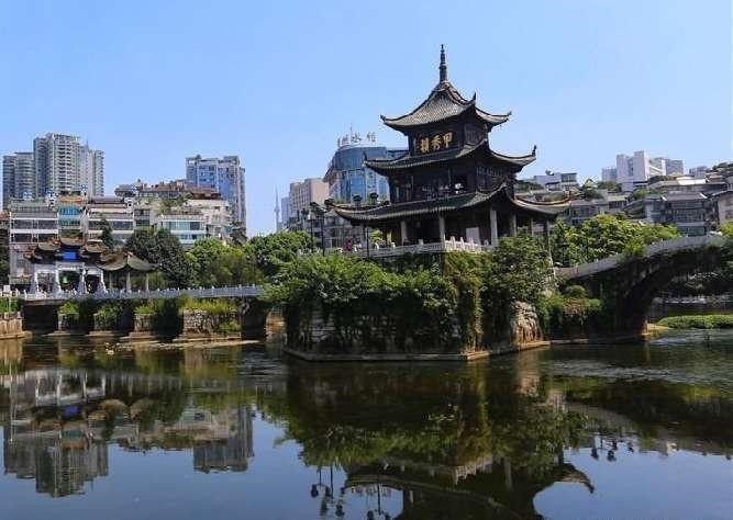 甲秀楼位于贵州省贵阳市南明区翠微巷8号,地处南明河上,始建于明万历二十六年(1598年),以河中一块巨石为基设楼宇,历代屡加修葺,现存建筑为清宣统元年(1909年)重建遗存。