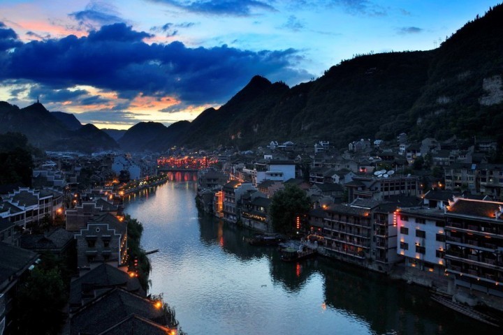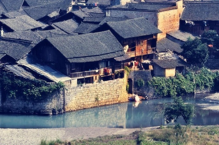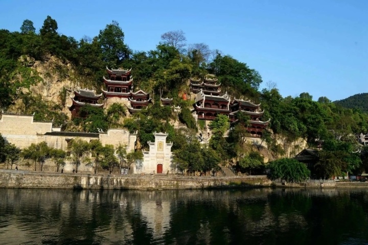 镇远古镇,位于黔东南苗族侗族自治州镇远县。河水蜿蜒,以“S”形穿城而过,北岸为旧府城,南岸为旧卫城。两城池皆为明代所建,现尚存部分城墙和城门。城内外古建筑、传统民居、历史码头数量颇多。