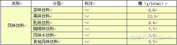 常见的饮料含糖量表如下: