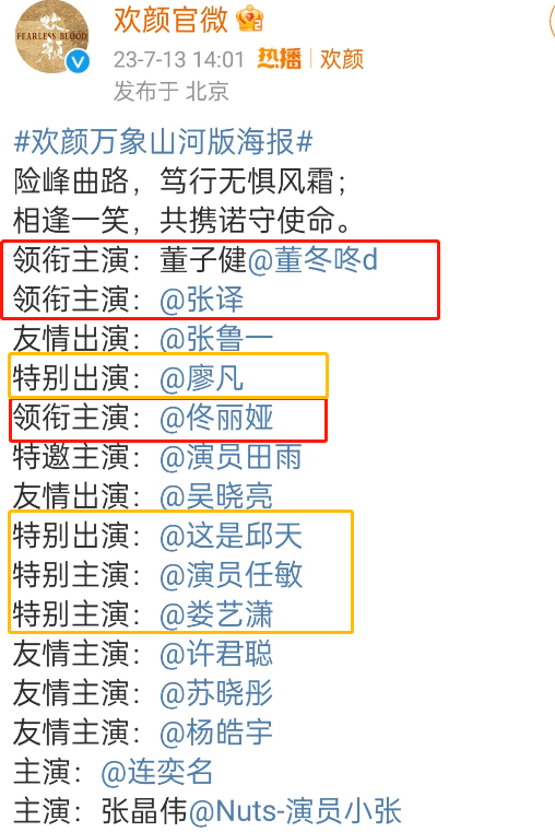 今年《狂飙》爆火后,张译和张颂文的热度疯涨,《欢颜》剧组就抓住了张译这个营销点,把他这个客串角色弄到了海报首页,搞得这剧像张译主演的一样。