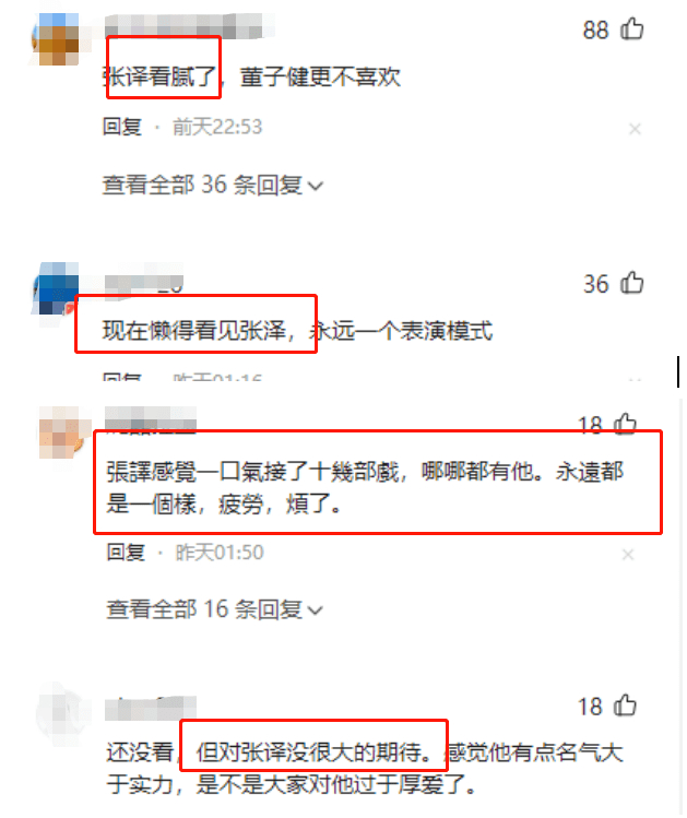 其实张译的演技是在线的,但过度频繁的曝光让他失去神秘感,而相似的角色又给观众带来一种“他演啥都一样”的感觉。