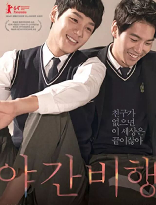 1.《夜间飞行》,这部电影可谓是韩国生活的同性恋在真实写照,这部电影从男主卑微的暗恋开始进行切入,讲述一个gay喜欢直男的故事,融入了韩国当时严重的校园暴力问题,结尾当直男也恋上这个喜欢他的男生,却被社会的不包容而考验折磨.并没有消费同性恋,只是写实。