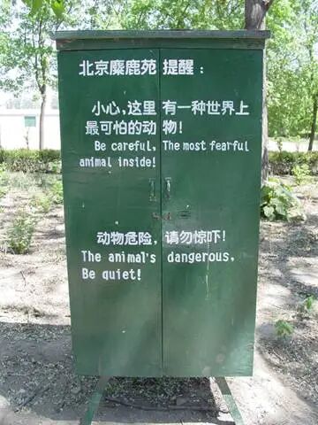 珍妮·古道尔20多年前还到我工作的北京麋鹿苑给了我一个非常具体的指导,她说郭耕,你可以做这样一个教育项目,做一个小箱子,然后上面写上字:“who is the most dangerous animal in the world?”(谁是世界上最可怕的动物呢?),然后打开以后里面有个镜子。后来我就照着她的指导做了这样一个小箱子,里面搁了个镜子,不仅是这样,我还有一个创意,什么创意呢?就是打开门以后,里面还有一道门,上面写了几个字,说这是一种相当危险的哺乳动物。有时候我在没开门的时候,我说谁是世界上最可怕的动物啊?有人说蝎子,有人说是毒蛇。我说不是,是一种哺乳动物,但是这种动物肉不可食,毛不可用,骨不可入药,这种动物常对同类大肆残杀,更会对异类随意侵害,这种动物就在此门中。啊,这什么动物啊?没什么用却挺厉害。一打开,哦,原来是一面照见自己的镜子。原来人类是地球上最可怕的动物呀。这就是提醒我们要扪心自问。