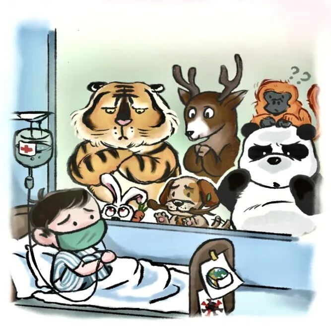动物为侣,其实人和动物既是相依为命的伴侣,更是休戚与共的生命共同体,为什么用这个词呢?生命共同体,就是从生态安全和公共卫生的角度看,生物的多样性就意味着自然疫源地的稳定性,就是说当这些生命链条和生命形式无法维持的时候、无法延续的时候、无法平衡的时候,那也就是这些野生动物身上寄生的病毒病菌寄生虫的迁移之时,就是这些宿主、野生动物死了,被人吃了,流离失所了,那么宰杀动物的人,宰和吃的这些人呢自然就成了病毒、病菌、寄生虫新的宿主。你看看,这就叫咎由自取。