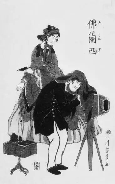 摄影几乎同步在世界流行,因为它随着商业贸易、探险家和传教士(传播),在1839年之后就开始普及,(照片)连日本的浮世绘都表现了法国的摄影术传进日本的景象。