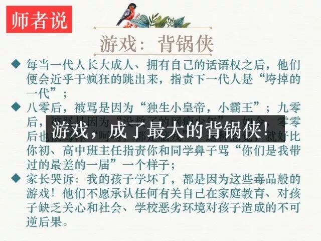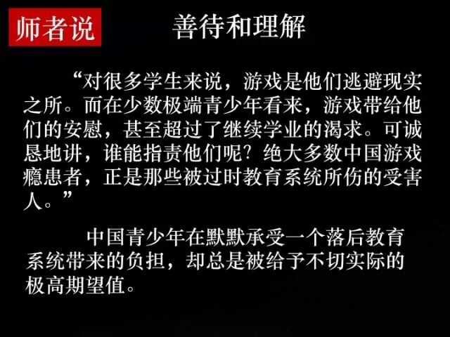 游戏内外的纷争,是复杂的中国社会的缩影。对于学生而言,却有着太多的辛酸和迷惘。站在道德的制高点去批判游戏、批判沉迷游戏的他们,这太过容易,但丝毫无助于解决问题,只有针对他们的现实状况,对症下药,才能从根本上扼制学生的沉迷堕落。为什么如此简单的道理,整个教育界却选择性忽视呢。