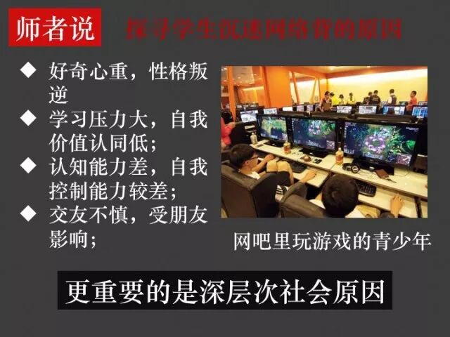 原因有三:第一,中学生,尤其是男生很喜欢玩游戏,包括我自己,这是客观现实;第二,虽然我国已成为游戏第一大国,但整个社会对游戏仍存在偏见,电子竞技、直播等火热,学生对电子竞技(游戏)存在误解;第三,我们的学生(中国学生)沉迷游戏的现象特别严重,但是社会的普遍声音是嗔怪制作游戏者和学生,却选择性忽视这背后深层次的社会原因。打游戏和成年人喜欢看电影、打麻将、旅游并无本质的区别,只是爱好而已。一味的责怪、谩骂起不到多大效果,反而因为学生在青春期的逆反心理,变本加厉。作为老师,我选择和他们站在一起,尊重他们,理解他们,同时向他们传播正确的信息,传递正确的价值。苍白的说教大多毫无效果,毫无意义。