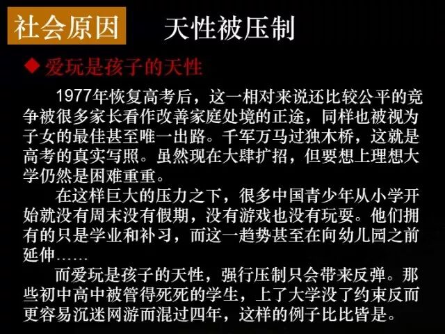 中国学生沉迷游戏有这个社会年龄段的原因,但为什么中国学生普遍比国外学生更容易沉迷,这不得不让我们思考一个深层次问题。