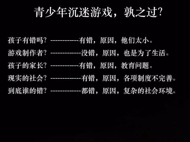 青少年沉迷游戏是社会问题而不简单为个人原因。全社会不能推责。