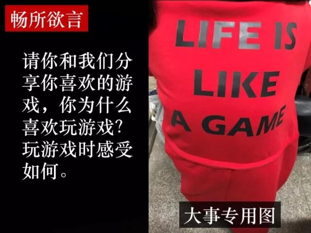 和同学们分享玩游戏的有趣经历,“敌人都打到家里来了,队友还在那打野怪,能不捉急吗”“我们都攻到对面家里了,队友还在那打野怪,能不生气吗”