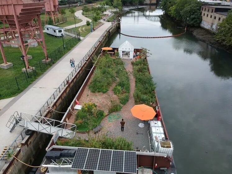 得梅因的涉水桥,2015年解释一个像“涉水桥”这样的项目,就是要试图解释感性和肉体经验的价值以及重看的重要实践。我不知道这种重估对河流的健康以及它的管理和照料能起到什么作用。2016年,我与他人合作组建了“ Swale”:纽约市的公共浮动食用林。人们可以免费进入Swale并免费采摘新鲜食品,参加活动,研讨会或只是参观水上公园。在此期间,我们要求人们参与推动有关公共食品的本地对话。登上Swale的经历可能是不可思议的:您看着注视着多年生可食用,药用和传粉媒介植物的地块,在海浪之上摇摇欲坠,就可以感受到水的流动。