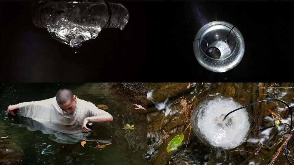 声音和水是该项目的主要材料。声音被用作传播媒介,揭示有关当前时空动态状态的全面声音信息。尽管水是地球上最常见的物质,它具有生命并存在于几乎每个生物地球化学循环系统中,但它具有与周围环境高度关联的能力:从大规模环境变化到小分子规模变化,从能量波到化学物质的变化。通过对这些概念的理解和对水的观察,我们获得了有关系统相互作用的见解。它为我们提供了测量和联系,表明了我们与自然的关系。
