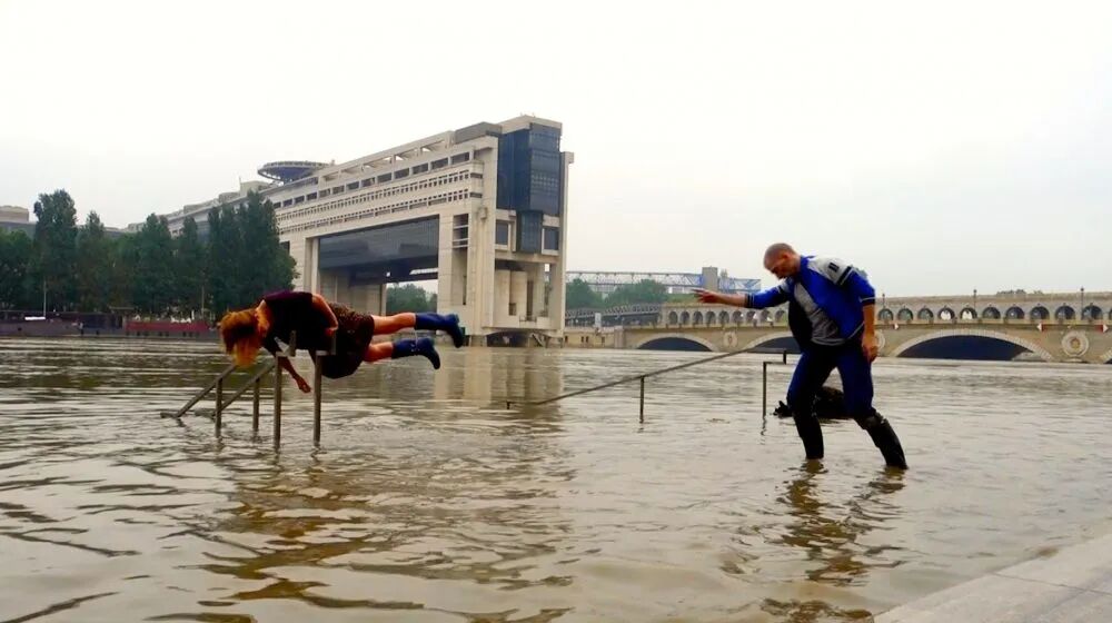 舞蹈510(每天跳舞一分钟),纳迪亚·瓦多里·高迪耶(Nadia Vadori-Gauthier)/ 2016年6月6日,晚上13:32,法国巴黎第13届贝西港。与Beno?tLachambre一起跳舞。天空已经变成了乳白色的几天,一切似乎同时又陌生又熟悉,有点不真实。塞纳河的水域开始消退。财政部正站在水里。