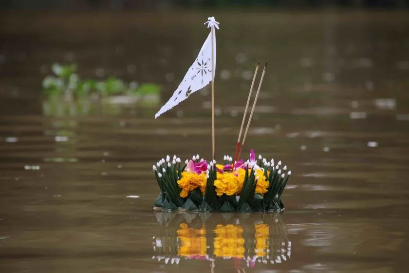 湄南平。泰国清迈。照片:Basia Irland在阴雨季节结束时的农历十二月初夜,社区聚集在我的河岸向我和我的水灵致敬。这个灯节被称为Loy Krathong(????????)。该名称被翻译为“漂浮在篮子上”,是指制作krathong 或浮力的香蕉茎雕塑的传统,这些 雕塑装饰有折叠的香蕉叶,并包含花,香,蜡烛和硬币(是向河上供奉的)精神)。这些雕塑在晚上漂浮在我潮湿的皮肤上,形成向下游跳舞的烛光游行。