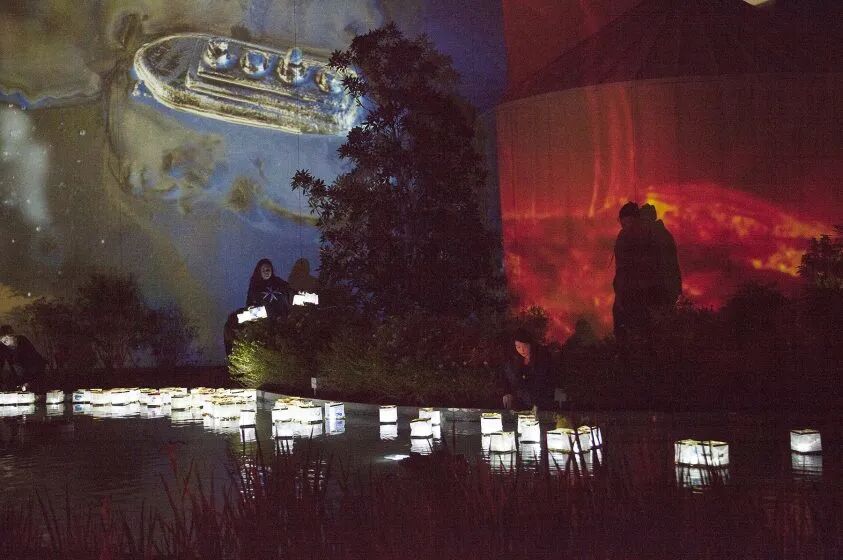 该项目遍布全国,并在佛罗里达州的彭萨科拉大学(Pensacola University)首次发表。该大学紧邻发生墨西哥湾“深水地平线”溢油事故。墨西哥湾漏油事件被认为是美国历史上最严重的漏油事件。在佛罗里达州,电影被映射并投影到画廊的外部立面上。外墙的右侧让人联想到典型的水塔的形状。彭萨科拉(Pensacola)的学生在漂浮的日本灯笼上画了情书。学生们在活动期间激活了浮动灯笼并阅读了开放式麦克风的情书。该项目继续进行,最近一次迭代发生在Albrecht Kemper艺术博物馆,由Marguerite Perret策划的展览中倾斜:“水的记忆:定义水圈中的位置感。”电影投影到外部画廊的正面,手绘浮动灯笼,彭萨科拉大学,佛罗里达州,2017年。照片:Robin Lasser