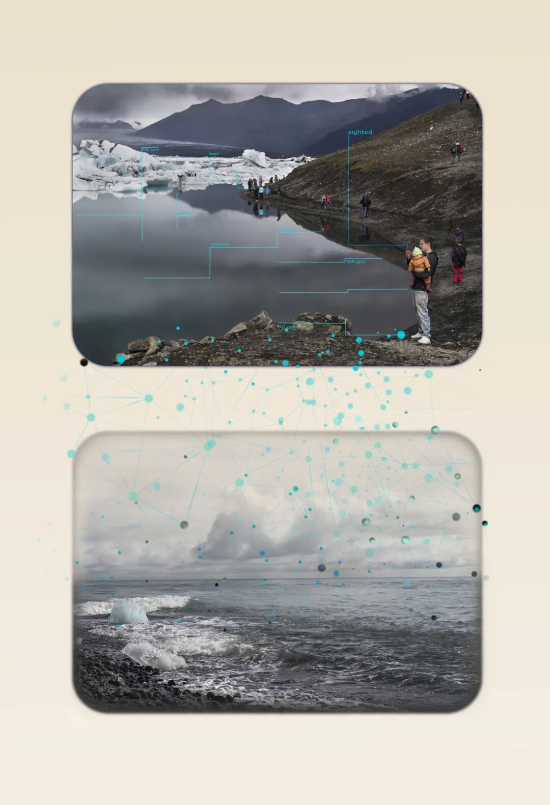 一个微小的事件(一滴水或冰裂和融化的声音)如何产生最终可以整体看待的反馈回路?系统内部的每个方面都相互联系,并且能展现更大的图景。我做出的最有趣的发现之一是,水具有声音的能力,可以和谐地反映人类的活动。它吸收了我们朝着目标推进的方向性力量,并使事情放慢了速度。它提醒我们谦卑地与大自然一起生活。