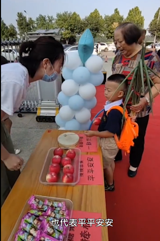 8月31日,焦作一幼儿园开学第一天,一位4岁半小男孩被奶奶带着,书包里装几棵大葱十分抢眼。原来是奶奶根据老家习俗,几棵大葱寓意聪明伶俐,还在书包放一个苹果寓意平平安安。孩子奶奶对老师说:葱晚上不用让孙子带回去了,留在你们这炒个菜吧!