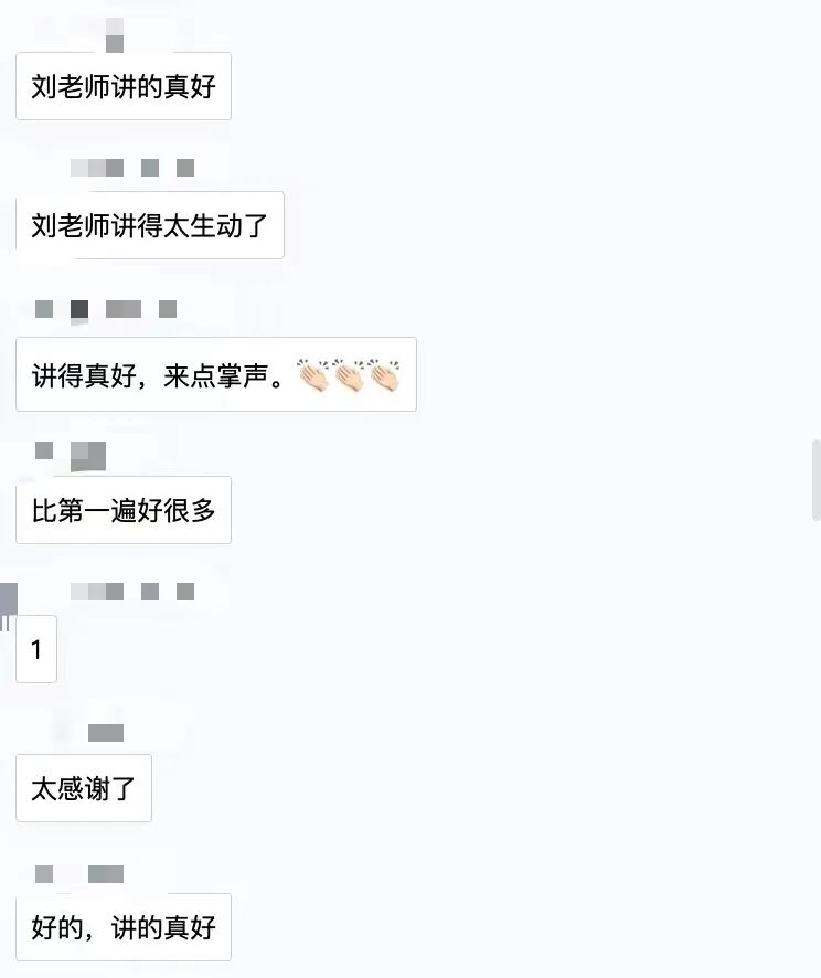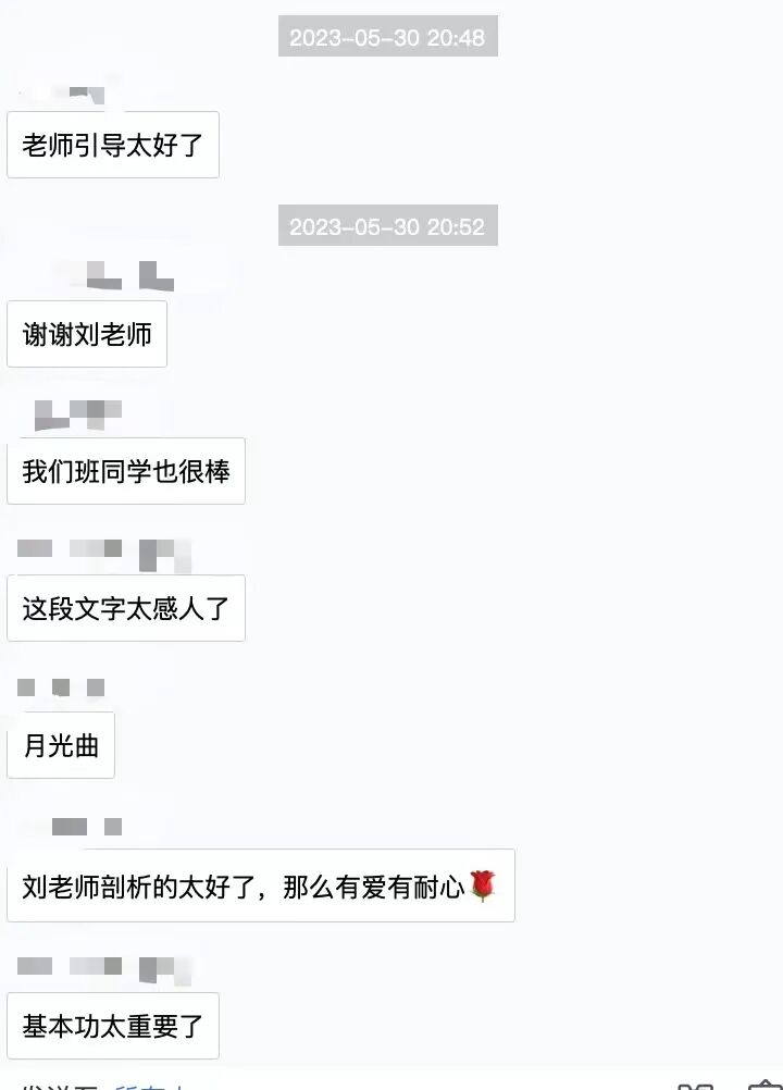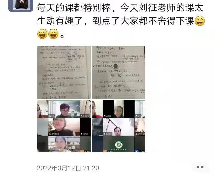 虽然是线上课堂,但一点也不影响大家讨论的积极性。学员们踊跃参与每一个朗诵展示机会,刘征老师也认真地对学员展示进行点评,课堂氛围十分活跃。