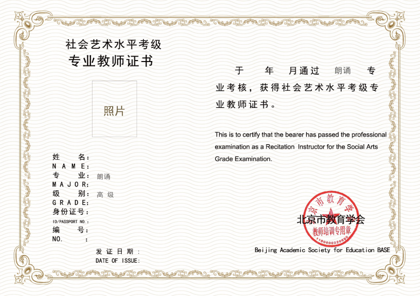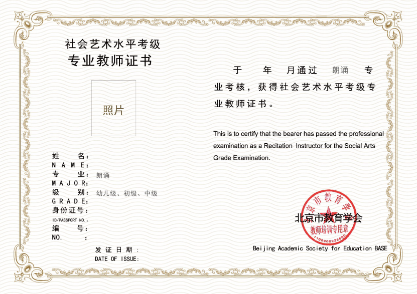2004年,成立北京市教育学会艺术考级委员会,并于2021年扩大了考级专业范围,增设了朗诵考级。