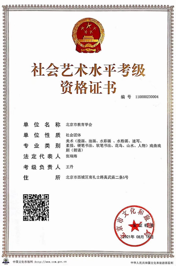 北京市教育学会朗诵考级为文旅部认证的考级单位,可通过国家政务服务平台,登陆文化和旅游部政务服务门户网站查询验证。