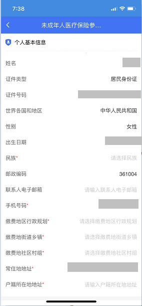 3.进入未成年人医疗保险参保信息填写页面,填写未成年人的个人基本信息及个人缴费信息后,点击“提交参保”,提示“提交成功”。