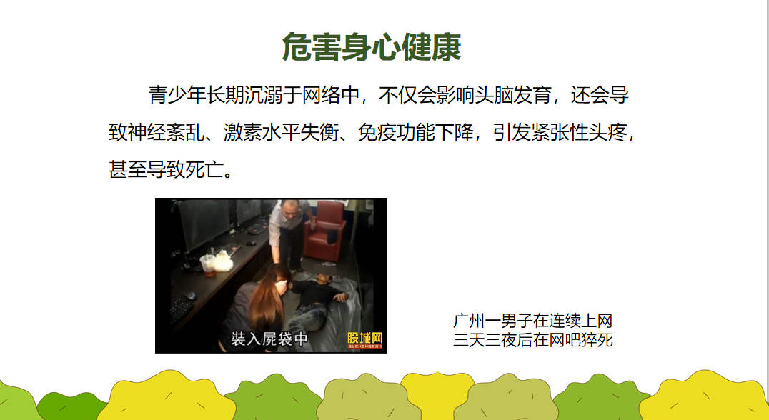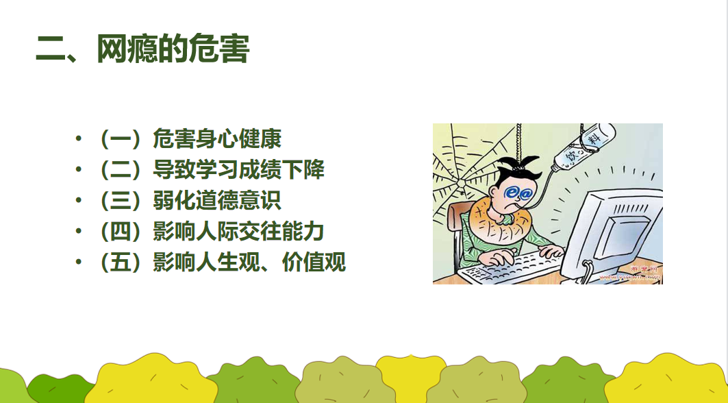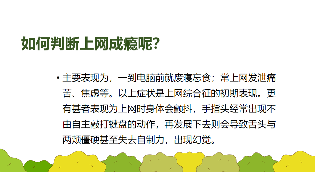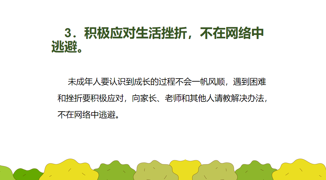 近年来,因未成年人沉迷网络引起的社会矛盾凸显,引发社会普遍关注。为引导未成年人科学合理地使用网络,遏制沉迷网络等不良行为,切实保护未成年人身心健康,请家长们与学校一起做好未成年人的教育引导,帮助孩子做到健康上网、正确用网。