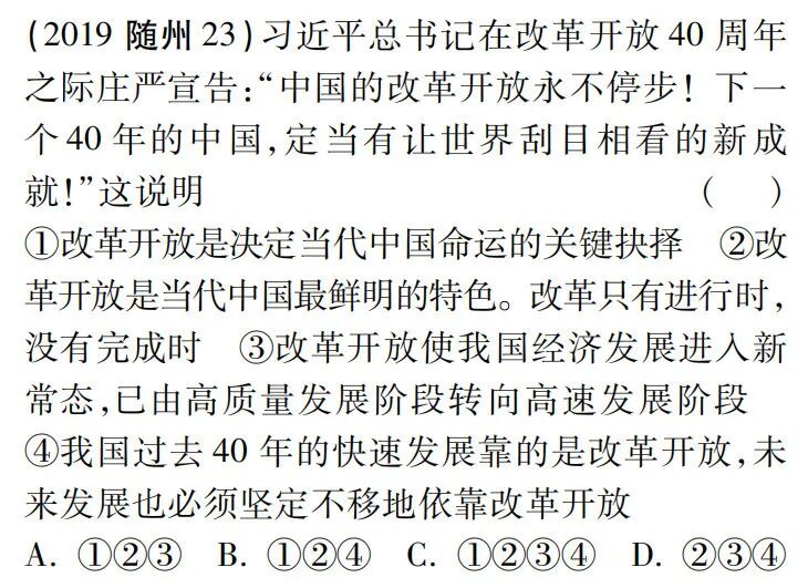 (2)改革开放是决定当代中国命运的关键一招,也是决定实现中华民族伟大复兴的关键一招。