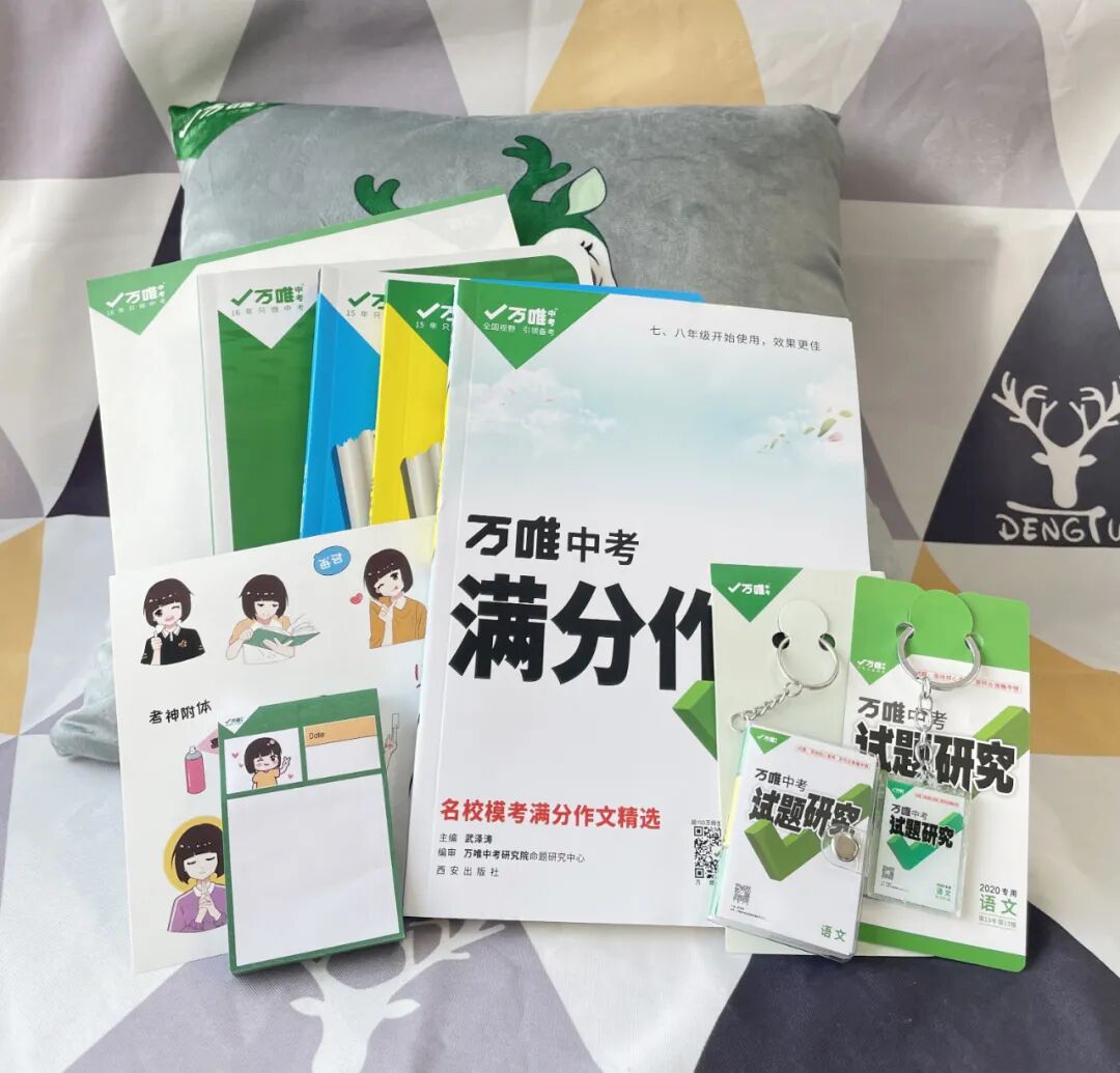 福利:本条推文,唯唯将随机挑选留言中的1位小伙伴,免费赠送价值56元的《2021万唯中考满分作文》1本+任意两种周边奖品(截至12月21日中午12:00)