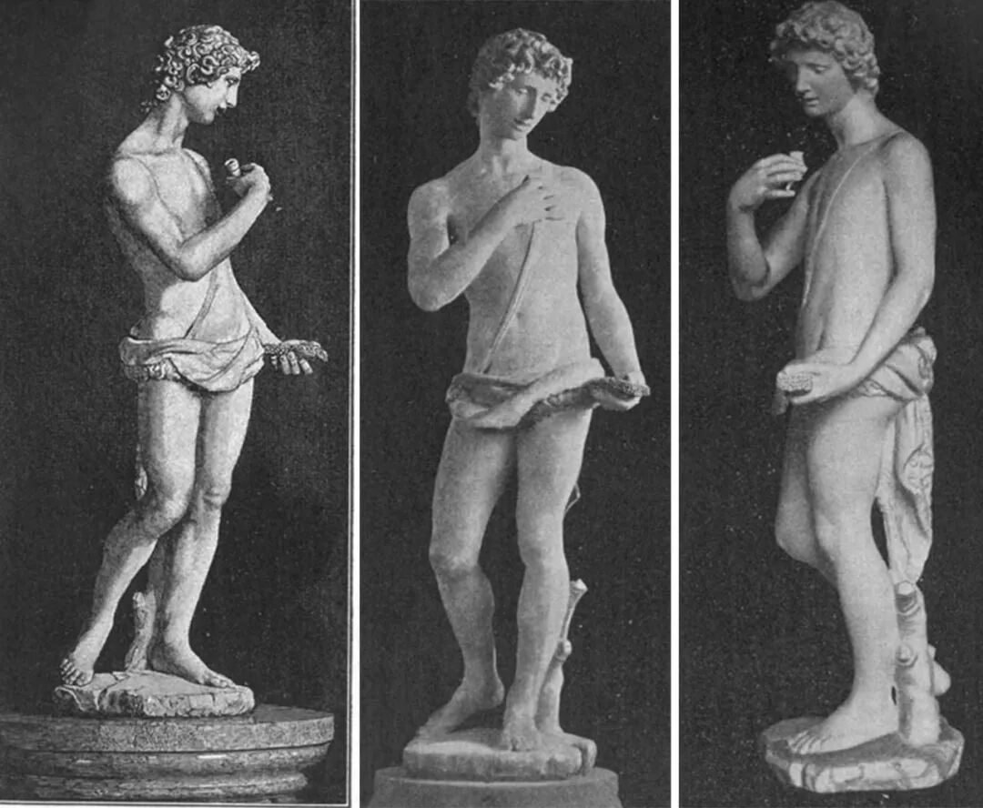在文中,沃尔夫林将三件著名的雕塑与它们的照片进行了对比,精彩地分析了拍摄视点等问题(参见本文的图片说明),对于理解摄影如何影响了艺术史研究和艺术作品认知很有帮助。这三件雕塑是多纳泰罗(Donatello)的大卫(David)青铜像、韦洛基奥(Verrocchio)的大卫青铜像(均藏于佛罗伦萨博物馆)和藏于柏林博物馆的《乔万尼诺》(Giovannino)。