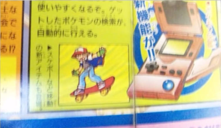 除了精灵和场景外,还有很多并没有“兑现”的游戏元素,其中一个就是交通方式——滑板,在正作金银中被取消: