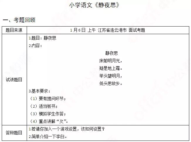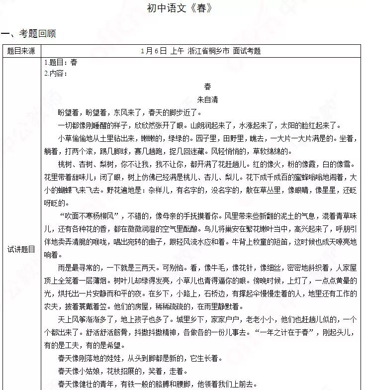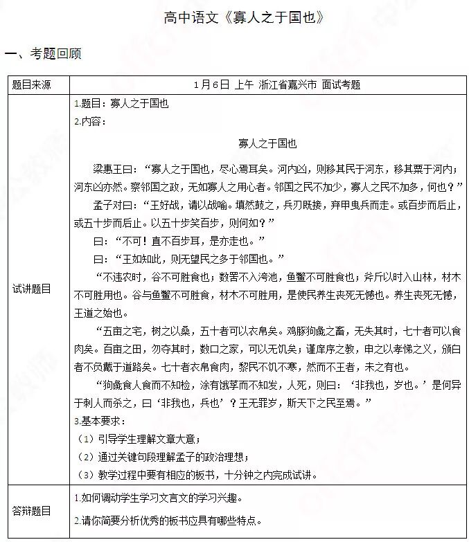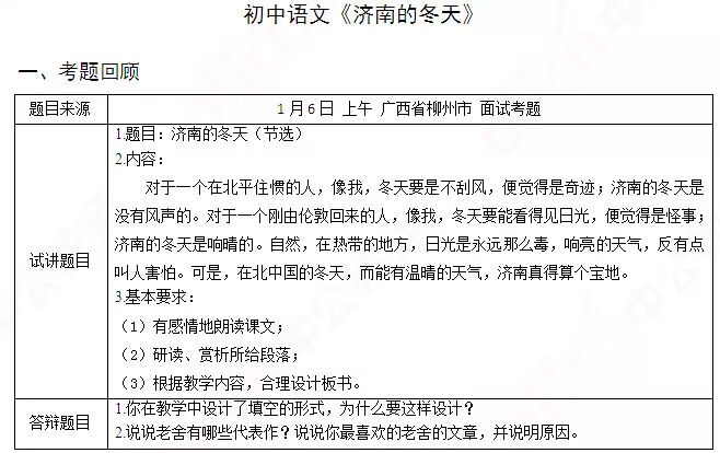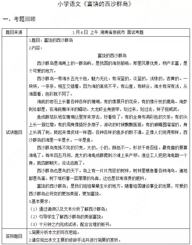 题目来源:1月6日下午湖南省郴州市面试考题