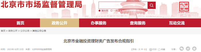《北京市金融投资理财类广告发布合规指引》则提出,金融投资理财类广告不得含有虚假或者引人误解的内容,不宣扬无节制消费和奢靡生活方式,不诱导受众接受不适当的金融产品和服务。对可能存在的风险以及风险责任有显著及通俗易懂的提示或警示,并显著标示诸如“投资有风险,入市需谨慎”等字样。