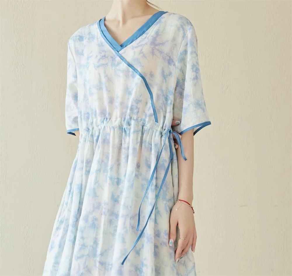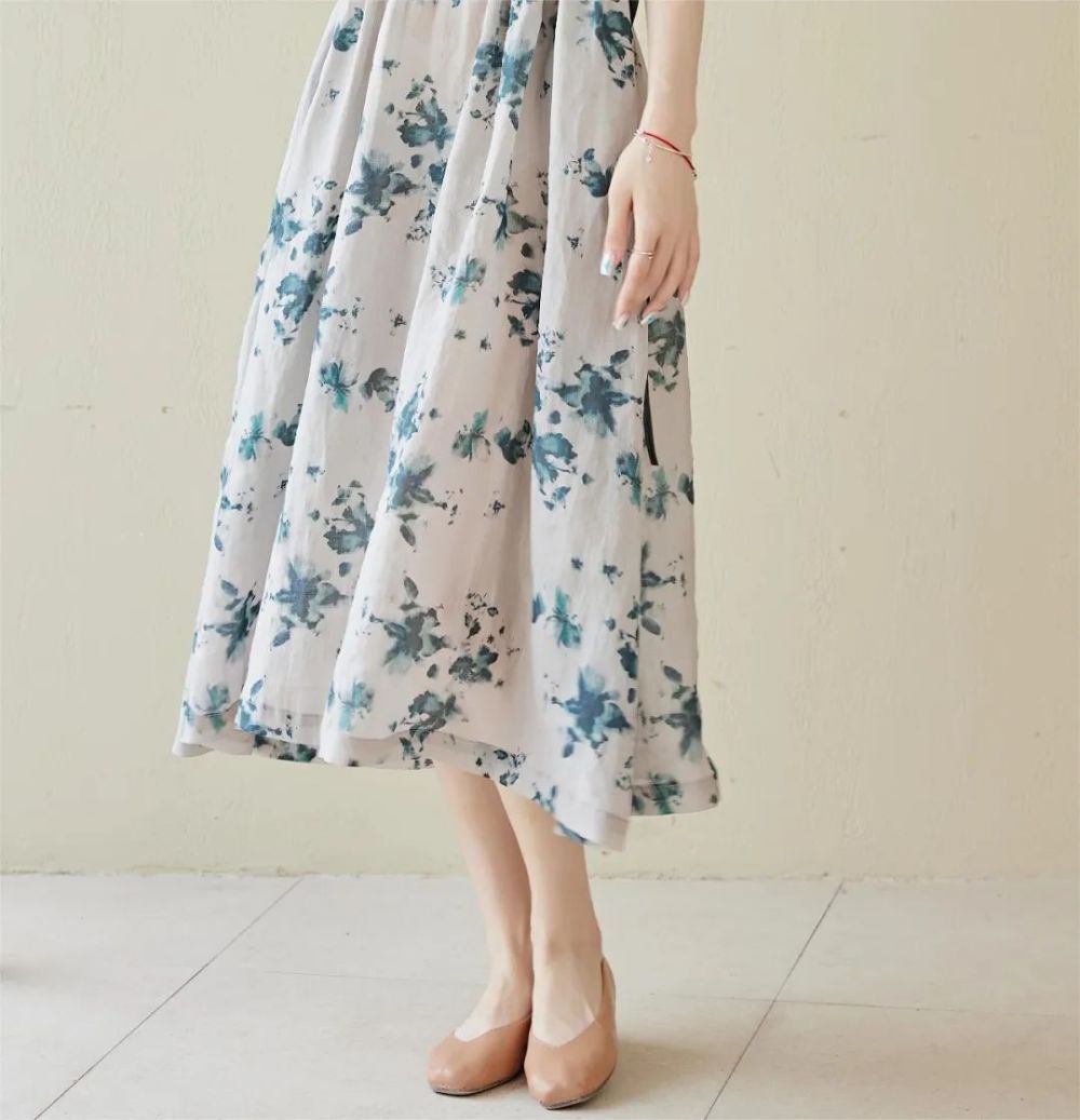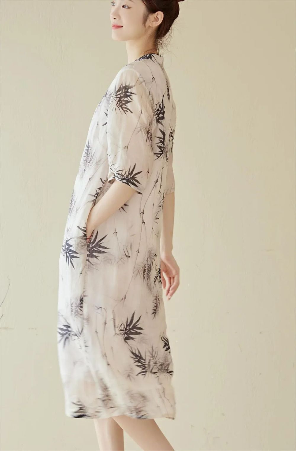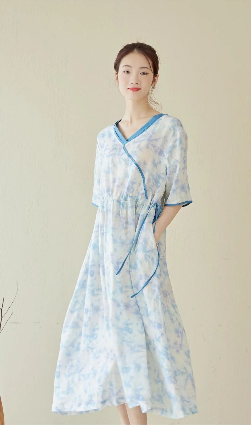 今天给大家推荐的这2款国风苎麻连衣裙,4款花型——水墨浸染、花系韵染连衣裙。