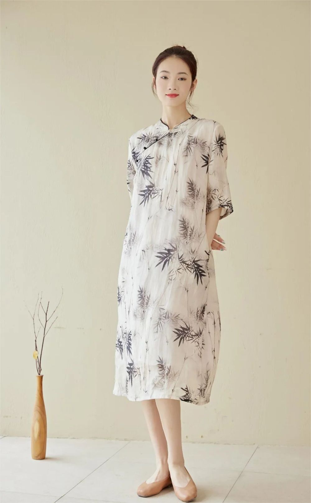 颇具国风神韵的旗袍款式,根据现代着装需求放宽版型,改良下摆,有特色,又实穿,这件旗袍很值得入手。