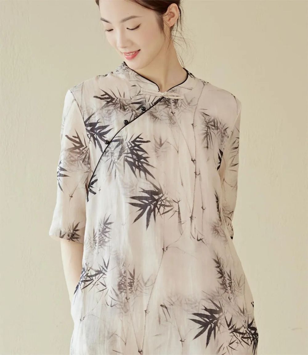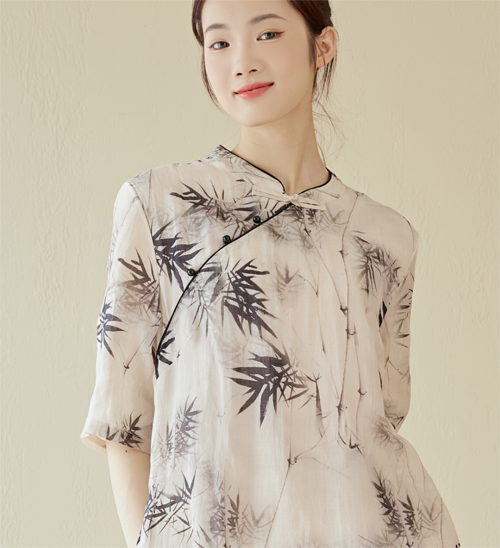 一身剪裁得体的中式美衣,让周身都萦绕着云淡风轻的气质,有种无风自然凉的感觉。