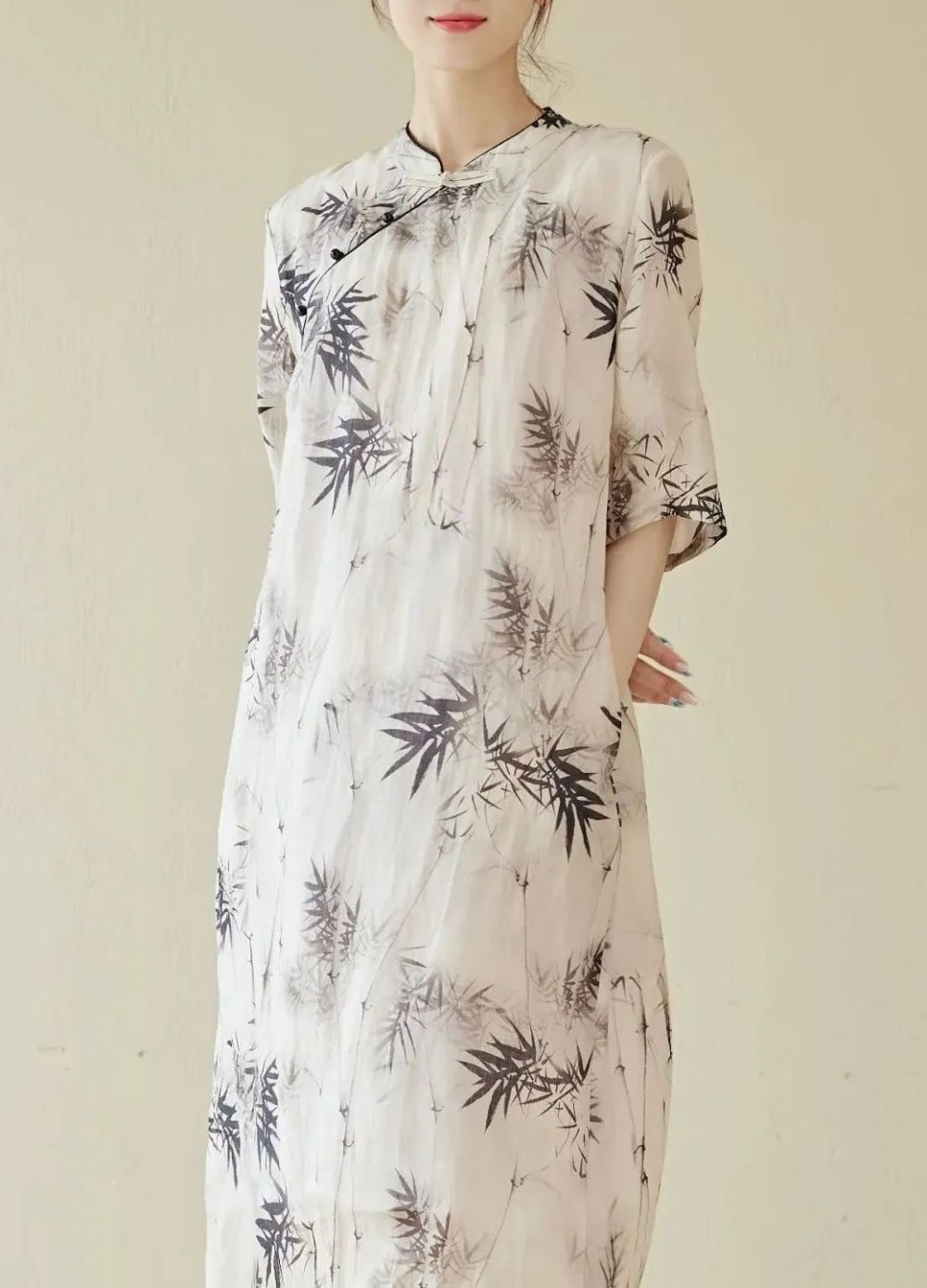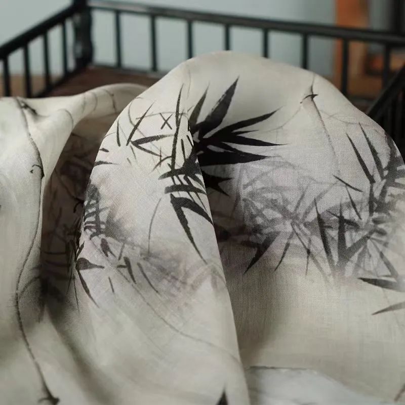 整体墨竹的印花,有种清丽、温柔贤淑的书卷气,是朱砂痣,也是白月光。