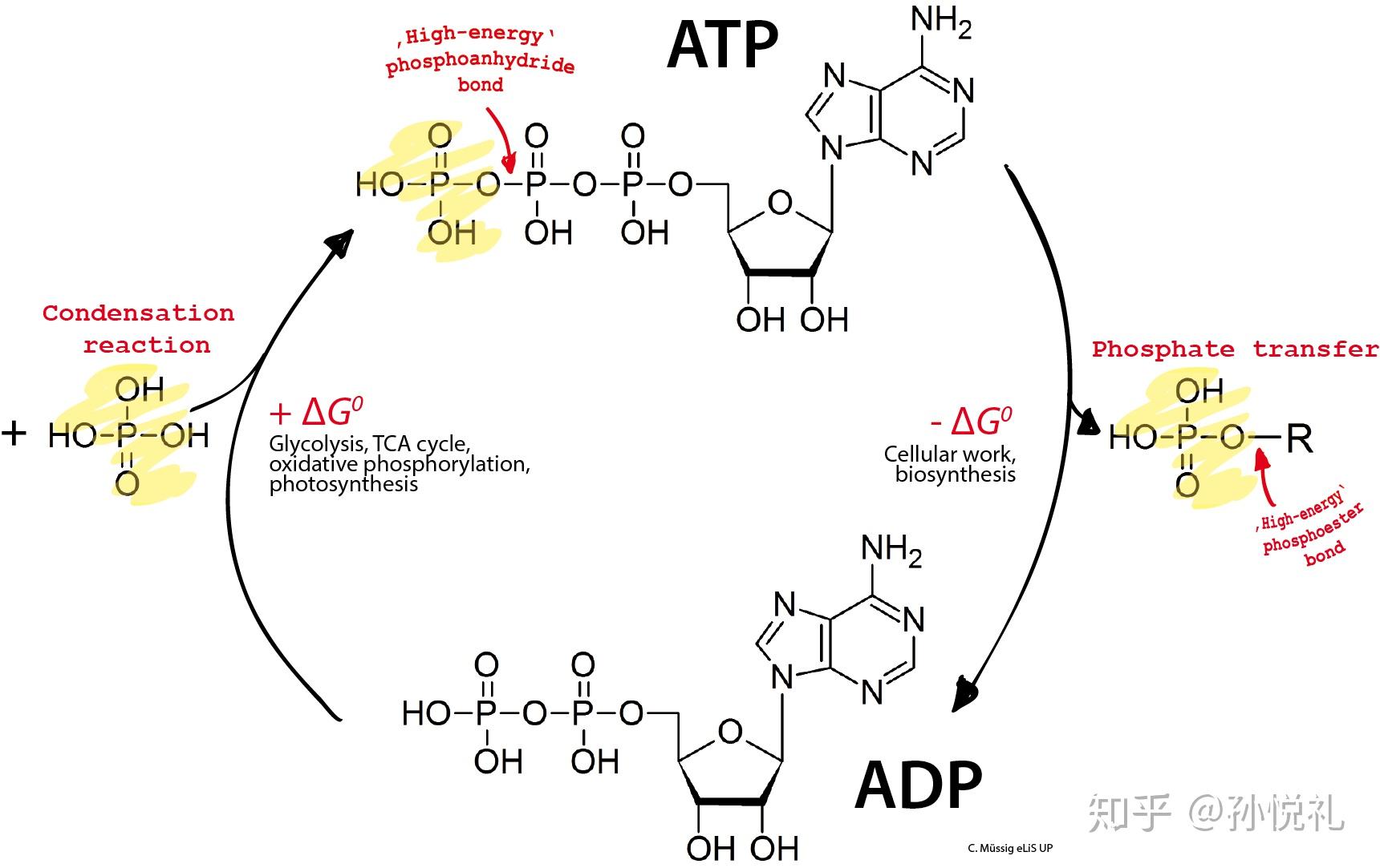 为了把ATP用到极致,一般ATP会分为3次水解,ATP-ADP-AMP,每次水解失去一个磷酸,最终三磷酸腺苷只剩下一个无法提供能量的腺苷,腺苷就是能量货币用完之后剩下的尾料。