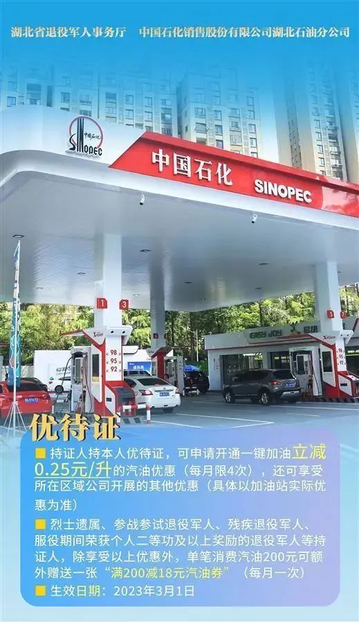 在发布仪式优待项目现场签约环节,湖北省退役军人事务厅与中石化湖北石油分公司、中国电信湖北分公司、中国邮政湖北分公司、湖北文化旅游集团有限公司、武汉中商超市连锁有限公司、武汉融通中南花园酒店有限责任公司6家单位签订拥军优抚合作协议,推出全省首批省级优待项目。现场还发布了各市州部分优待项目,涵盖文化旅游、餐饮住宿、商超消费、医疗健康等领域。