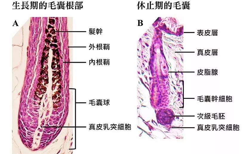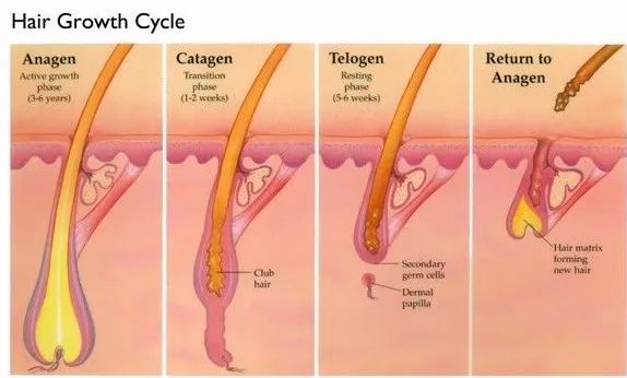 所有毛囊的生命周期,都可分为生长期(anagen)、衰退期(catagen)以及休止期(telogen)。