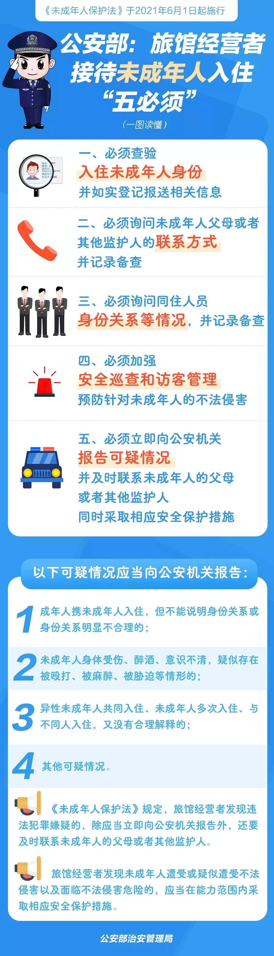 公安部对旅馆经营者接待未成年人入住提出“五必须”要求,以切实防范在旅馆中侵害未成年人案件的发生,保护未成年人身心健康。